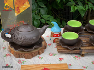 Bộ ấm chén men hỏa biến Bát Tràng gồm: