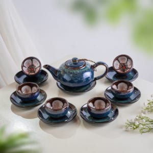 Bộ ấm chén men hỏa biến Bát Tràng gồm:
