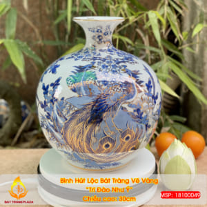 Bình Hút Lộc Vẽ Vàng "Trĩ Đào Như Ý" H30