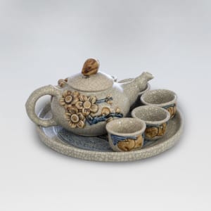 Bộ ấm trà thờ 5 chén men rạn nổi
