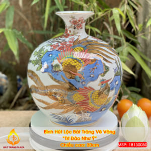 Bình Hút Lộc Vẽ Vàng "Trĩ Đào Như Ý" H30