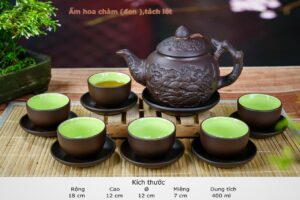 Ấm Trà Tử Sa Hoa Chàm Đen Tách Lót